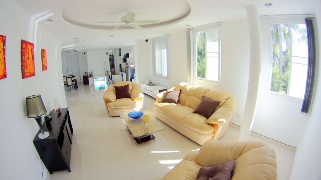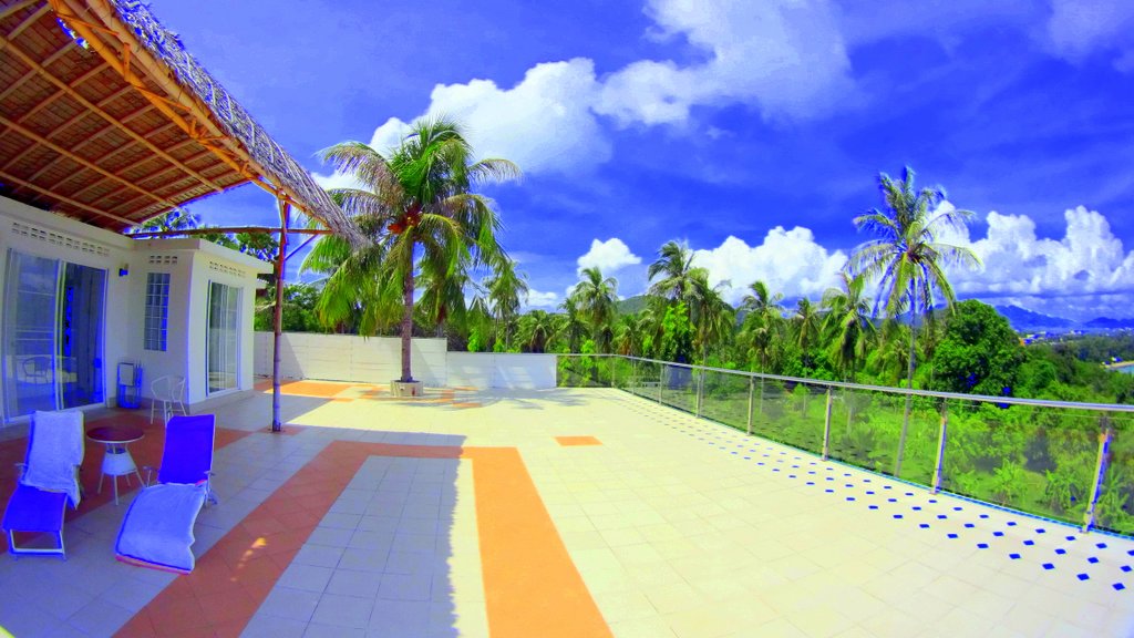 VIP Penthouse Apartment with 2 bedrooms, 2 bathrooms, living room with kitchen and small officeBuilding area: 130 sqm Terrace: 250 sqm Bedrooms: 2 Bathrooms: 2 Sleeps: 4 Kitchen: fully-equipped Dinning room: 4 seats Living room: 4 seats Entertainment: LCD TV, cable television Internet: wireless Swimming pool: shared Parking: private Distance beach: 5 minutes walking Distance airport: 60 minutes driving Distance Phuket city: 30 minutes driving